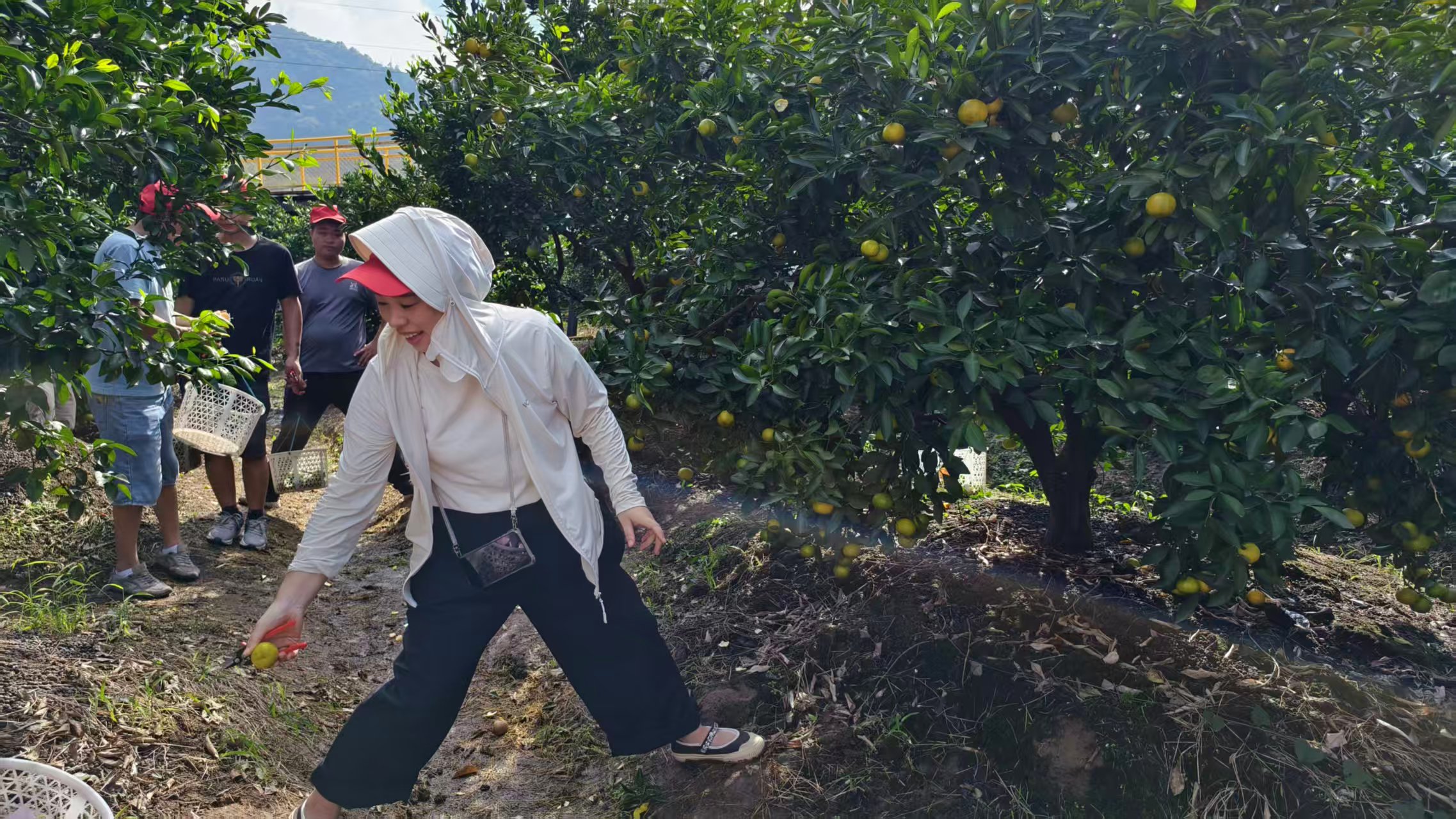 Egun berean, langile guztiek bilketa jarduerak ere egin zituzten Huangyan Orange Garden-en, eta uzta beteta zegoen.